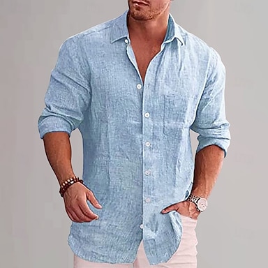 Herren Baumwoll-Leinen-Hemd Einfach Urlaub Schwarz Weiß Wein Himmelblau Langarm Revers Bekleidung