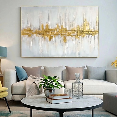 Handgemaltes Ölgemälde auf Leinwand, Wanddekoration, goldenes abstraktes Bild für Wohnzimmer, gerollt, rahmenlos, ungespannt, zum Aufhängen