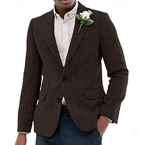 Herren Tweedblazer Notch-Kragen Retro Vintage Fischgrätenmuster Blazer Schwarz Kaki Dunkelblau Übergrössen Einreihig Zwei-Knöpfe