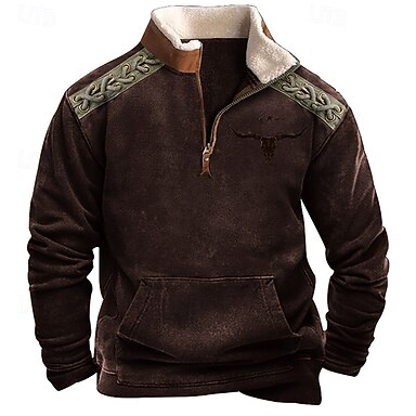 Herren Sweatshirt Fleece-Sweatshirt Viertelreißverschluss Sweatshirt Schwarz Armeegrün Braun Khaki Kaffee Halber Reißverschluss Kuh Patchwork Halber Reißverschluss Sport & Outdoor Täglich Ferien