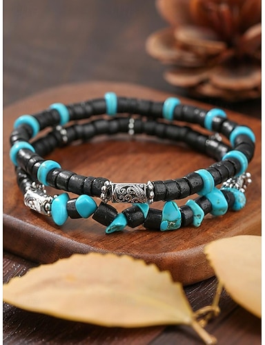 Herren-Armbandset mit Natursteinperlen, mehrlagiger Stretch-Armbandschmuck im Bohème-Stil für Freizeitkleidung, Partys und Geschenke