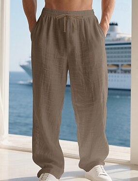 Herren Leinenhosen Hose Sommerhose Baggy-Hosen Strandhose Kordelzug Seitenknopf Gerader Schnitt Einfach Komfort Atmungsaktiv Volle Länge Lässig Täglich Strand Urlaub Mode Blau Schwarz Unelastisch