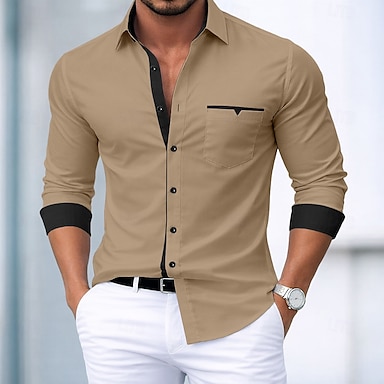 Herren Hemd Kleidhemd Durchgeknöpft Hemd Bügelfreies Hemd Knopfhemd Farbblock Lässig Täglich Blau Weiß Rosa Kaki Langarm Umlegekragen Frühling Frühling & Herbst Bekleidung Patchwork