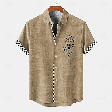 Herren Hemd leinenhemd Strandhemd Hawaiihemd Sommerhemd Kokosnussbaum Outdoor Urlaub Marineblau Blau Grün Kaki Kurze Ärmel Umlegekragen Sommer Bekleidung