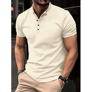 Herren Waffel-Poloshirts T Shirt Arbeit Straße Stehkragen Kurze Ärmel Einfarbig Basic Sommer Lässiger Schnitt Schwarz Rote Dunkelmarine Kaki Armeegrün Waffel-Poloshirts