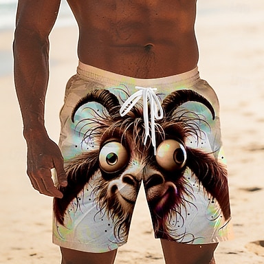 Herren Tiermotiv Cartoon Ziege Badehosen Badeshorts Boardshorts Mittlere Taille Lustig Hawaiianisch Strandurlaub Seitentaschen Netzfutter Elastischer Kordelzug in der Taille Designer Bekleidung