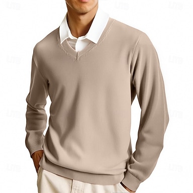 Herren Pullover Lässiger Pullover Strickpullover Gerippt Stricken Normale Oberteile Gestrickt Einfach V Ausschnitt Mode Lässig Urlaub Alltagskleidung Bekleidung Herbst Winter Kamel Wein S M L