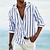Herren Hemd Leinenhemd Sommerhemd Strandbekleidung Kapuzenhemd Gestreift Urlaub Ferien Blau Schwarz Weiß Marineblau Langarm Kapuzenpullover Sommer Frühling Bekleidung