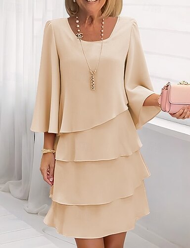 Damen Minikleid Chiffonkleid Stufenkleid Mode Modern Outdoor Urlaub Ausgehen Normale Passform Einfach Dreiviertelarm Rundhalsausschnitt Rosa Rote Marineblau Khaki Frühling Herbst