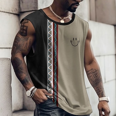 Herren Grafik Farbblock Weste Ärmelloses T-Shirt für Herren Kappenärmel T-Shirt 3D-Druck Rundhalsausschnitt Hemd Mode Designer Muskel Täglich Sport Fitnessstudio Schwarz Weiß Blau Frühling & Sommer