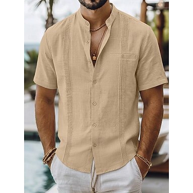Herren Hemd leinenhemd Hemd mit chinesischem Kragen Hemd mit Stehkragen Freizeithemd Knopfhemd Einfach Urlaub Straße Schwarz Weiß Rosa Khaki Kurzarm Großvaterkragen Sommer Bekleidung Button-Down