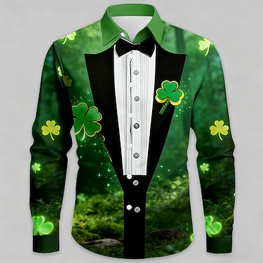 St. Patrick's Day Herren Shamrock Faux Kragen und Anzug Design Keltische Kunst Hemd Button Up Hemd Langarm Vintage Retro Party Feiertag Frühling Herbst Umgeschlagen 3D Druck Kragenhemden Grün 1 Licht