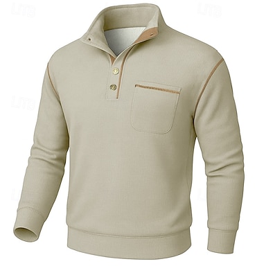 Herren Sweatshirt Pullover Viertelreißverschluss Sweatshirt Schwarz Weiß Khaki Stehkragen Einfach Reißverschluss Patchwork Sport & Outdoor Lässig Täglich Streetwear Cool Sportbekleidung Frühling