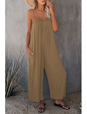 Damen-Jumpsuit aktiv einfarbig ärmellos U-Ausschnitt Urlaub täglich lockere Passform Schwarz Armeegrün Rot Sommer
