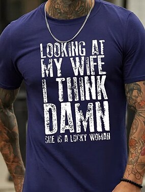 Herren Grafik Buchstabe Sie ist eine glückliche Frau T Shirt Lässiger Stil Baumwolle Kurzarm Grafik Hemd Schwarz Wein Königsblau Bequemes T-Shirt Straße Lässig Modedesigner-Kleidung
