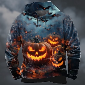 Herren Kürbis Grafikdrucke Kapuzensweatshirt Kapuzenshirts Pullover Täglich Klassisch Langarm Mit Kapuze Halloween Ferien Ausgehen Schwarz Blau Druck Frühling & Herbst Designer
