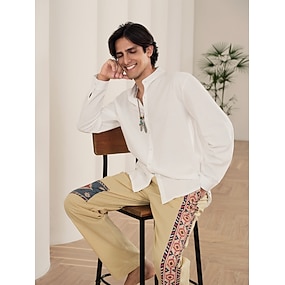 10 % Leinen Herren Hemd leinenhemd Schwarz Weiß Rosa Langarm Feste Farbe Stehkragen Strasse Täglich Bekleidung