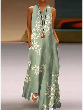 Damen Maxikleid Boho-Kleid Sommerkleid Freizeitkleid Ethnokleid Elegant Bohemien Urlaub Strand Ferien Date Normale Passform Blumen Grafik Ärmellos V Ausschnitt Blau Purpur Grün Sommer Frühling