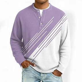 Herren Geometrisch Farbblock Waffel-Henley-Hemd Lässiger Stil Klassicher Stil Langarm Mode Designer Basic Lässig Täglich Outdoor Herbst Winter Frühling Grau Rosa Leicht Grün Hellblau Violett Henley