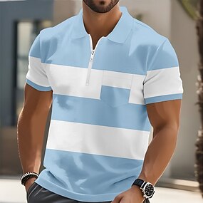 Herren Geometrisch Linie Reißverschluss-Polo Kurzarm Umlegekragen Alltagstauglich Outdoor Alltagskleidung Athleisure Reißverschluss Sommer Weiß Blau Grün