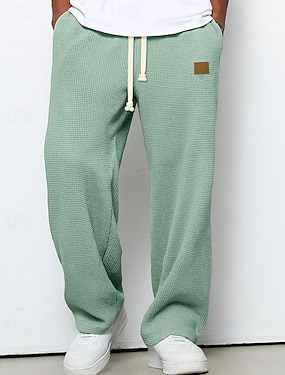 Herren Waffel Jogginghose Hose Baggy-Hosen Gerade geschnittene Sweatpants Kordelzug Elastischer Bund Einfarbig Komfort Volle Länge Outdoor Täglich Streetwear Mode Klassicher Stil Schwarz Weiß