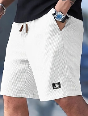 Herren Waffel-Shorts Shorts Sommershorts Freizeitshorts Tasche Elastischer Bund Kordelzug Einfach Komfort Atmungsaktiv Knielang Outdoor Urlaub Sport Lässig Schwarz Weiß Mikroelastisch