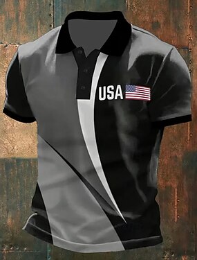 4. Juli 2026 250. Herren Amerikanische US-Flagge Poloshirts Kurzarm Polo-Shirts Revers Lässig Geschäft Athleisure 3D-Druck Knöpfe Frühling & Sommer Rote Grün Grau