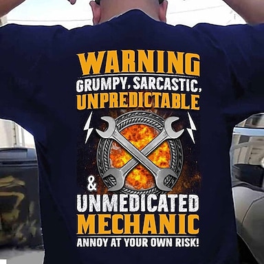 Männer T-Shirt Lustige Mechaniker Warnung Grumpy Sarkastisch Unberechenbar Unmedikamentiert Grafik T-Shirt Ärger auf eigene Gefahr