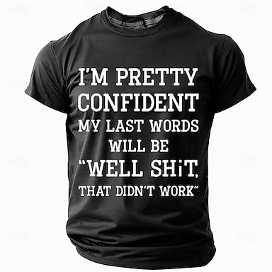 Herren lustiges Grafik T-Shirt sarkastisches Zitat der letzten Worte 'Ich bin ziemlich sicher dass meine letzten Worte "Na toll das hat nicht funktioniert" sein werden' kurzärmliges T-Shirt