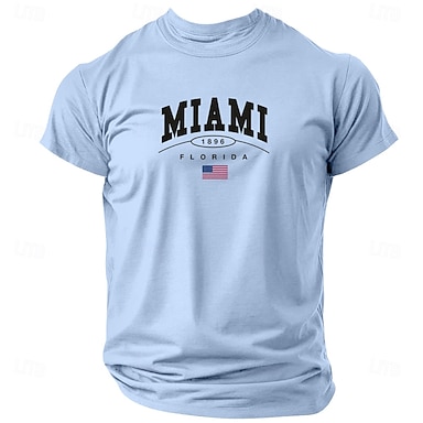 Miami Florida 1896 Männer Grafik T-Shirt | Amerikanische Flagge Kurzarm Lässiges Tee