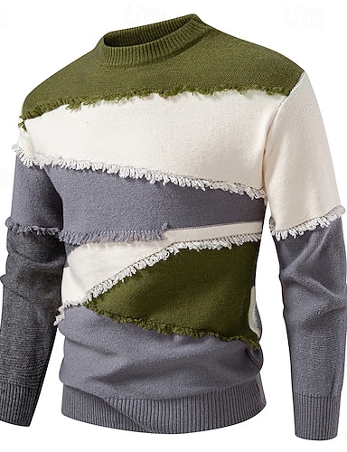 Herren Pullover Kurzer Pullover Gerippt Gehäkelt Stricken Standard Strick Farbblock Rundhalsausschnitt warm halten Moderne zeitgenössische Freizeitskleidung Ausgehen Bekleidung Raglanärmel Herbst