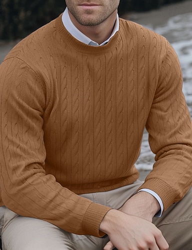 Herren Pullover Pullover mit Zopfmuster Gedrehtes Stricken Standard Klassicher Stil Strick Feste Farbe Rundhalsausschnitt Moderne zeitgenössische Arbeit Freizeitskleidung Bekleidung Herbst Winter