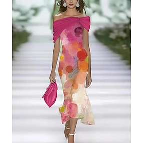 Damen Midikleid Etui-Kleid Trompeten- Meerjungfrauenkleid A Linie Kleid Elegant Urlaub Party Täglich Outdoor Büro Blumen Grafik Kurzarm Kalter Schulter-Ausschnitt Rosa
