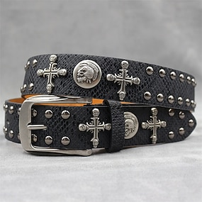 Herren Gürtel Automatische Schnalle Schnelle Veröffentlichung PU-Leder Legierung Vintage Langlebig Verstellbar Kreuz Totenkopfe Blau Silber Outdoor Täglich Taillengürtel