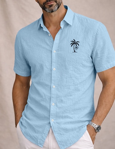Herren Leinenhemd Minimalistisches Aloha-Shirt Sommerhemd Freizeithemd Knopfhemd Kokospalme Lässig Strand Schwarz Weiß Rosa Himmelblau Kurzarm Revers Sommer Bekleidung
