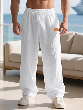 Herren Leinenhosen Hose Sommerhose Gaze-Hosen Kordelzug Elastischer Bund Gerader Schnitt Einfach Komfort Atmungsaktiv Volle Länge Lässig Täglich Outdoor Urlaub Mode Weiß Himmelblau Unelastisch
