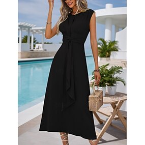 Damen Midikleid schwarzes kleid Cocktailkleid Kleid für Hochzeitsgäste Chiffon Mode Modern Outdoor Urlaub Normale Passform Einfach Ärmellos Rundhalsausschnitt Schwarz Purpur Dunkelblau Sommer Frühling