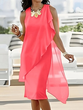 Damen Minikleid Freizeitkleid Chiffonkleid Sommerkleid Unterkleid Mode Modern Täglich Strand Wochenende Normale Passform Einfach Ärmellos Rundhalsausschnitt Schwarz Rosa Purpur Khaki Sommer