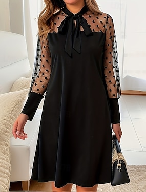 Damen Midikleid Freizeitkleid Schwingkleid Mode Modern Täglich Strand Wochenende Normale Passform Tupfen Langarm Rundhalsausschnitt Schwarz Marineblau Braun Grün Frühling Herbst