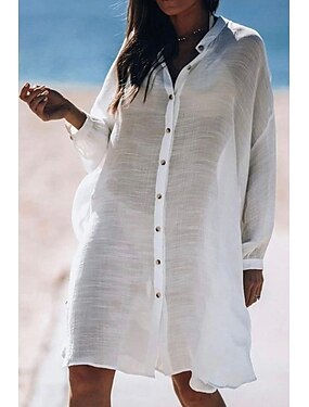 Damen Hemd Baumwoll-Leinen-Hemden Knopfleiste Bluse Einfach Basic Modern Langarm Hemdkragen Lange Oberteile Ferien Ausgehen Knöpfe Asymmetrisch Schwarz Weiß Blau Purpur Grau Sommer