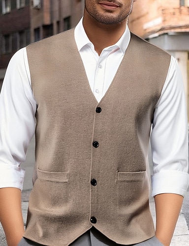 Herren Pullunder Kleid Pullover Weste Strickware Strickjacke Weste Gerippt Stricken Normale Oberteile Tasche Knöpfe Einfach V Ausschnitt Mode Klassisch Urlaub Alltagskleidung Bekleidung Herbst Winter