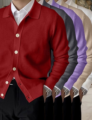 Herren Pullover Strickjacke Gerippt Stricken Normale Oberteile Gestrickt Einfach Umlegekragen Urlaub Mode Lässig Alltagskleidung Bekleidung Frühling & Herbst Weiß Rosa M L XL