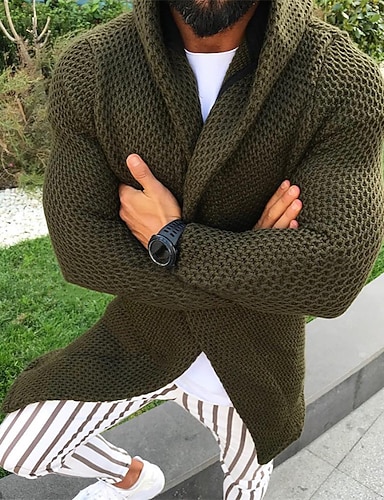 Herren Strickjacke Gerippt Stricken Tunika Gestrickt Einfach Kapuzenpullover Aufwärmen Moderne zeitgenössische Alltagskleidung Ausgehen Bekleidung Winter Militßrgrün M L XL