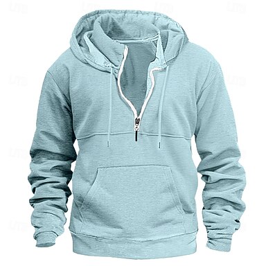 Herren Kapuzensweatshirt Sweatshirt Pullover Viertelreißverschluss Sweatshirt Denim Blue Schwarz Gelb Hellgrün Rosa Stehkragen Halber Reißverschluss Einfach Reißverschluss Sport & Outdoor Lässig