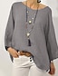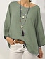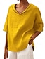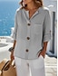 Damen Baumwoll-Leinen-Hemden Bluse Knöpfe Asymmetrischer Saum Einfach Aktiv Stilvoll Dreiviertelarm Glockenärmel V Ausschnitt Normale Oberteile Täglich Ferien Ausgehen Blau Gelb Grün Hellgrau Grau