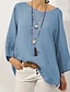 Damen Baumwoll-Leinen-Hemden Bluse Patchwork Einfach Elegant Vintage Stilvoll Langarm Rundhalsausschnitt Normale Oberteile Täglich Ferien Ausgehen Blau Schwarz Grün Rosa Grau Sommer Frühling