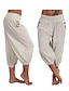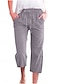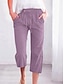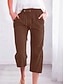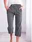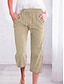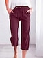 Damen Hose aus Baumwollleinen Caprihose Chinos Urlaub Basic Lässig Wadenlang Mittlere Taillenlinie Einfach Kordelzug Tasche Komfort Atmungsaktiv Unelastisch Täglich Outdoor Urlaub Weinrot Hellgrau