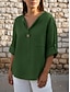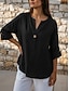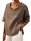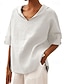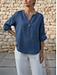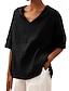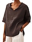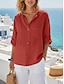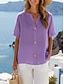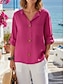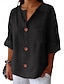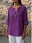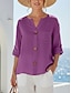 Damen Hemd Baumwoll-Leinen-Hemden Bluse Tasche Knöpfe Einfach Aktiv Stilvoll Dreiviertelarm V Ausschnitt Normale Oberteile Täglich Streetwear Ferien Schwarz Purpur Orange Rosa Grau Sommer Frühling