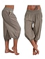 Damen Hose aus Baumwollleinen Caprihose Chinos Urlaub Basic Lässig Wadenlang Mittlere Taillenlinie Einfach Kordelzug Tasche Leicht Atmungsaktiv Unelastisch Heim Outdoor Urlaub Weinrot Hellgrau