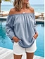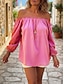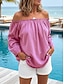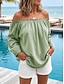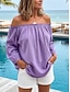 Damen Hemd Bluse Einfach Bohemien Stilvoll Lässig Langarm Schulterfrei Normale Oberteile Täglich Ferien Ausgehen Blau Gelb Rosa Armeegrün Purpur Sommer Frühling